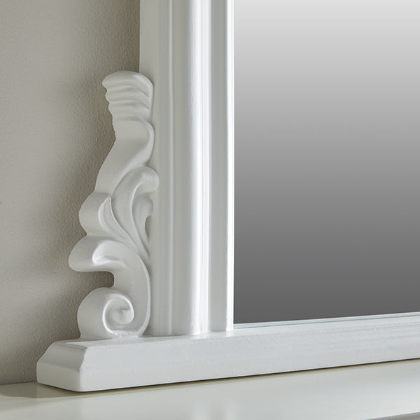 Welcome the Richmond white mirror, an excellent and ornate over-the-mantle mirror. The mirror is characterised by its breathtaking ornamentation along the top and sides. The Osborne is perfect for traditional and contemporary interiors due to its simple yet luxurious style. The Richmond is wonderfully crafted and finished by a team of experts, and, is made from the finest materials available. This ensures your mirror is made to last a lifetime! That’s not all though, we also include a 5-year guarantee, demonstrating our commitment to top-quality products and services.FAQ’s